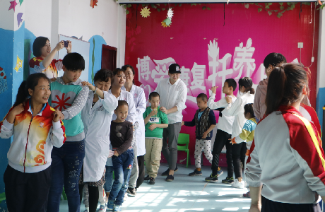 为了和小朋友们更快的亲近起来,在特教老师的组织下,小朋友们围成了一个大圆圈,亲切的与凤凰的慰问小组互动游戏,那些小天使们虽然不能清楚的表达,但是他们都积极的响应,眼睛里闪着喜悦的光芒,现场气氛十分活跃。
