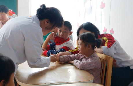 在博爱,特教老师带领慰问小组参观了康复训练教室、多媒体教室、室外活动操场及宿舍,详细介绍了孩子们的学习及生活情况。参观之后,在孩子们的康复训练教室内,凤凰妇产医院的医护与孩子们亲密互动,向特教老师们询问着孩子们的教育康复情况。
